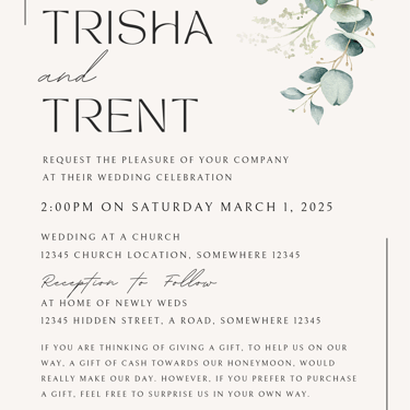 Scarlett did a phenomenal job on our wedding invitation. She had very little time to get them done and hit the ball out of the park on my expectations.